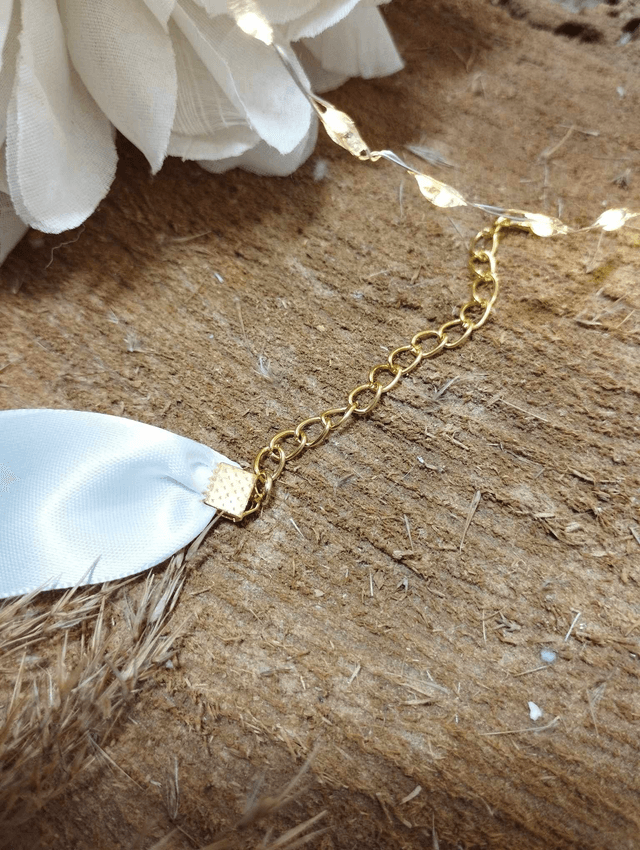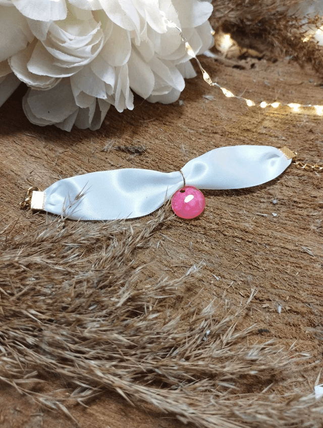 Collection LOVE - Bracelet en satin blanc avec médaille artisanale